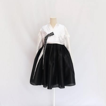 흑백의 깔끔하고 은은한 한글패턴이 고급스러운 한복입니다.