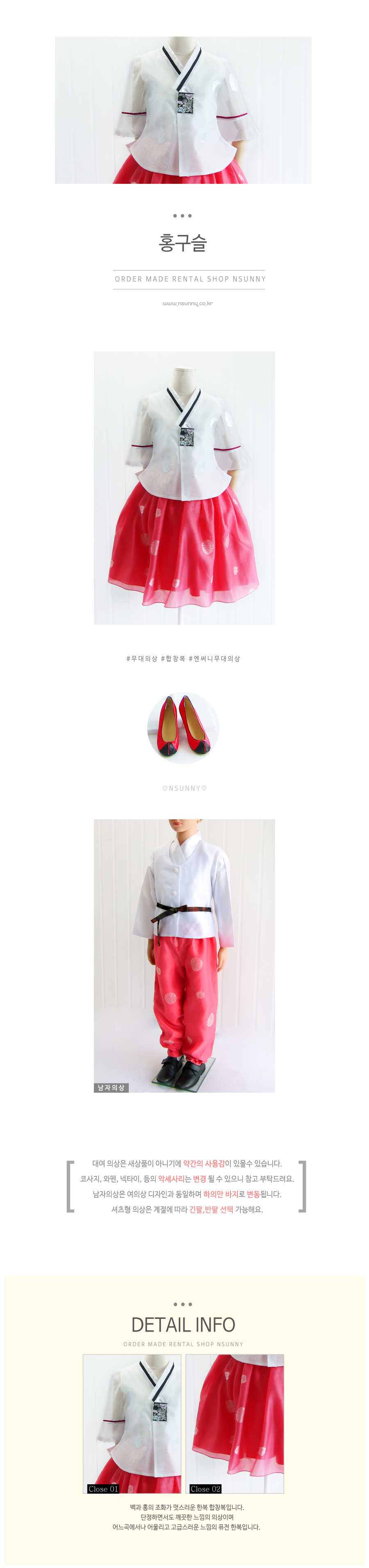 백색 나팔소매 저고리와 홍색치마가 조화로운 디자인~